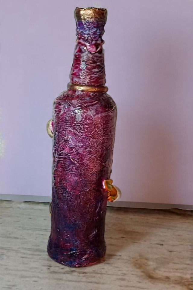 Introduce an element of refined beauty to your home with this stunning handcrafted clay bottle art. Depicting graceful lily flowers complemented by delicate leafy accents, this piece is carefully hand-painted to create an unmistakably elegant and timeless home décor statement.